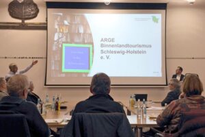 Ebenfalls vor Ort war Ralf Trimborn, der stellvertretend für das Umsetzungsmanagement der ARGE Binnenlandtourismus Schleswig-Holstein die Fördermöglichkeiten zur Stärkung des Binnenlandtourismus in Schleswig-Holstein präsentierte.