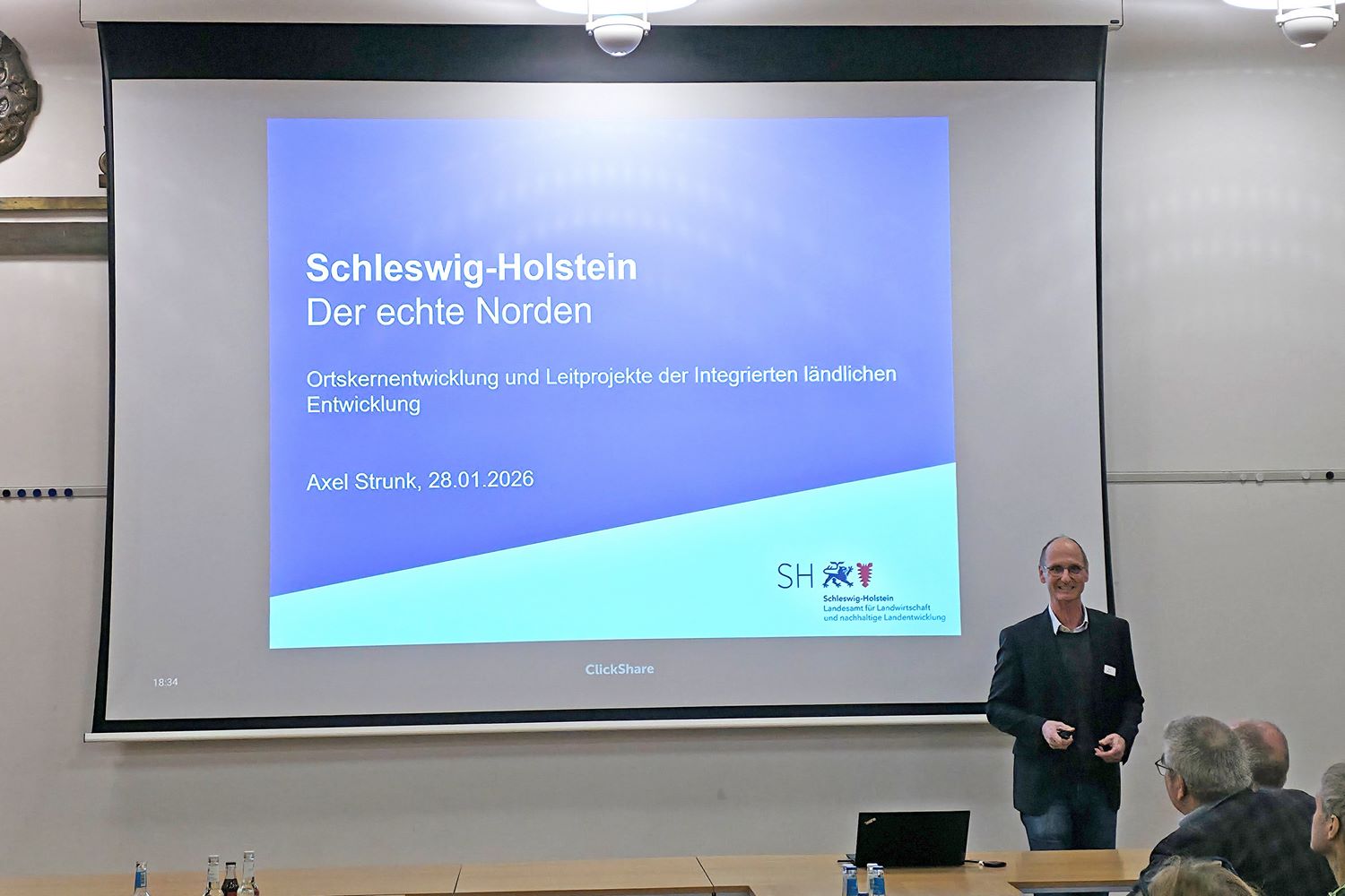 Darüber hinaus lieferte Axel Strunk, Dezernatsleiter beim Landesamt für Landwirtschaft und nachhaltige Landentwicklung Lübeck, wertvolle Beiträge zur Ortskernentwicklung sowie zu den Leitprojekten der Integrierten ländlichen Entwicklung.